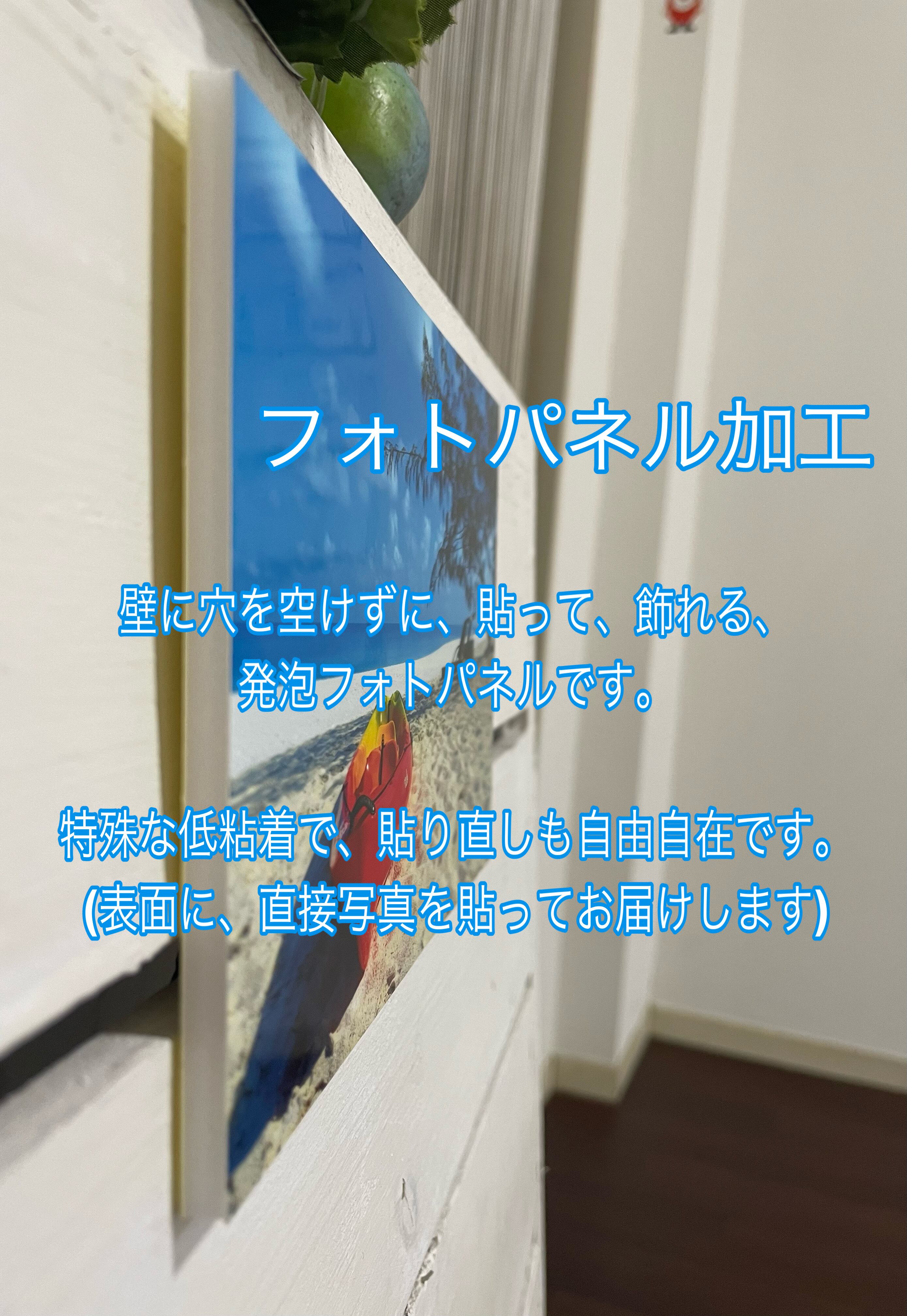 壁に穴を空けずに、貼って飾れる発泡フォトパネルです♪
